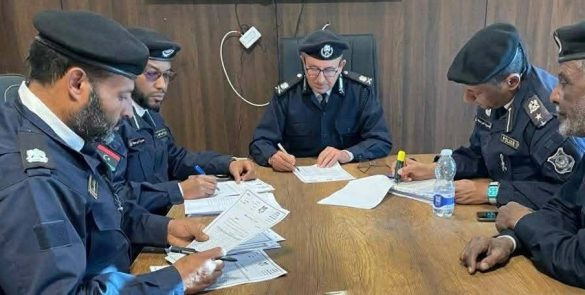 فسانيا : عمر بن خيلب. عقد مدير أمن مرزق المكلف اجتماعًا رسميًا، مع ضباط المديرية، بحضور مساعده للشؤون العامة العميد ‘عبدالمجيد الرويشدي ‘، لمناقشة سير العمل داخل المكاتب والأقسام المختلفة،