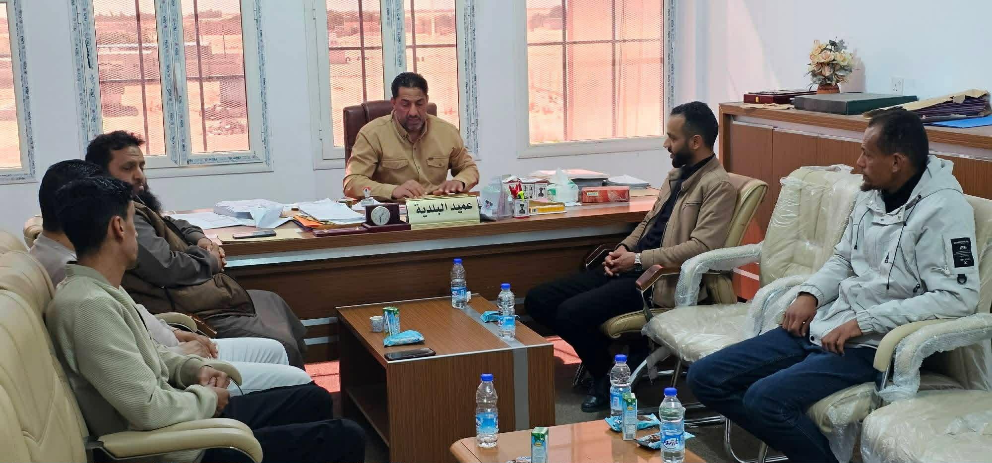فسانيا : عمر بن خيلب. بحث عميد بلدية أوباري ‘ سالم حمادي ‘، مع مدير مكتب الأوقاف والشؤون الإسلامية ومدير مكتب الزكاة بالبلدية، بحضور عدد من أعضاء المجلس البلدي ورؤساء