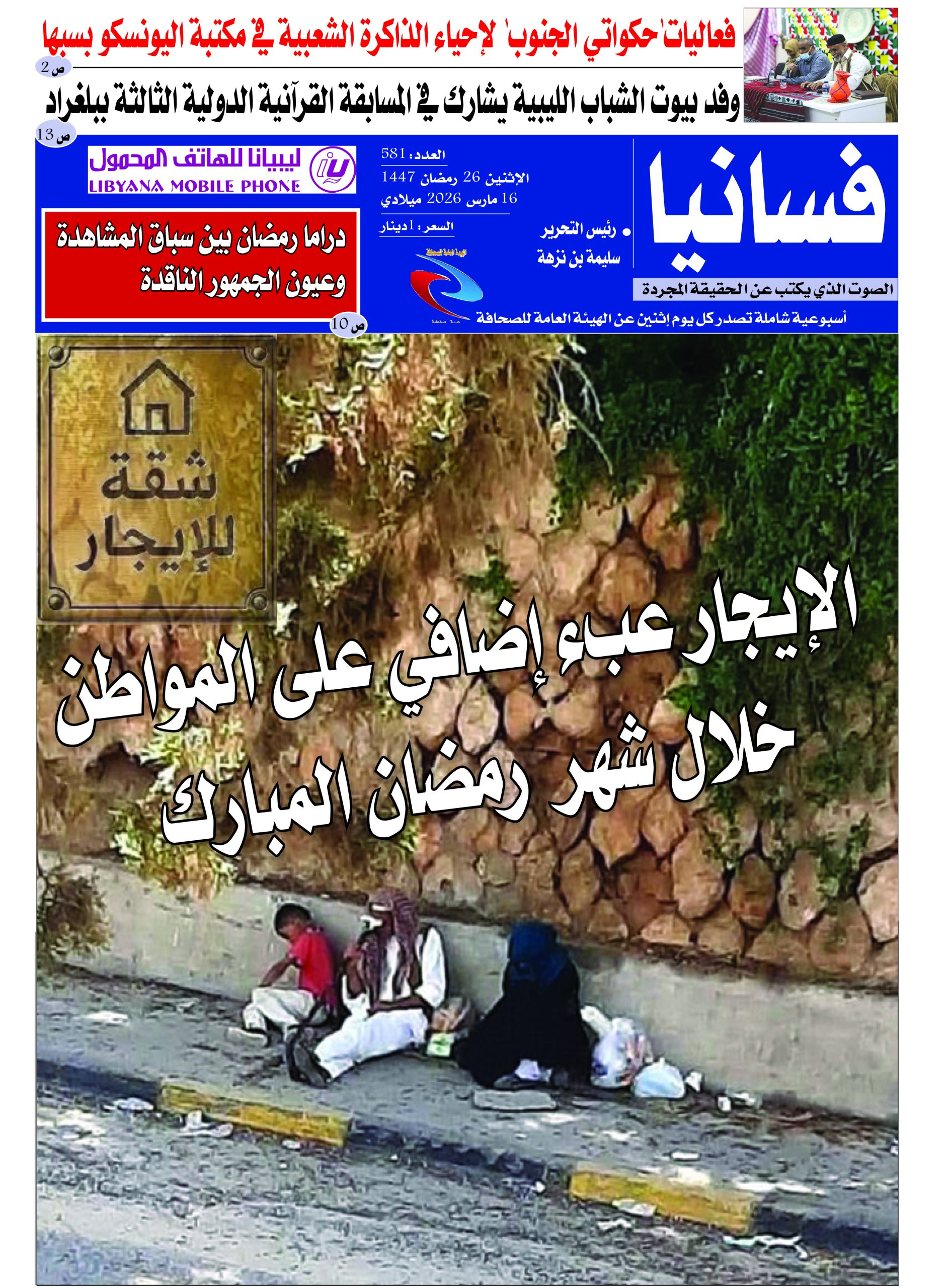 صدر اليوم الإثنين 26 رمضان 1447 / 16 مارس 2026 العدد 581 وهو آخر أعداد شهر رمضان المبارك وبه تقرؤون : * مجموعة من الأخبار والموضوعات المتنوعة التي ترصد الشأن