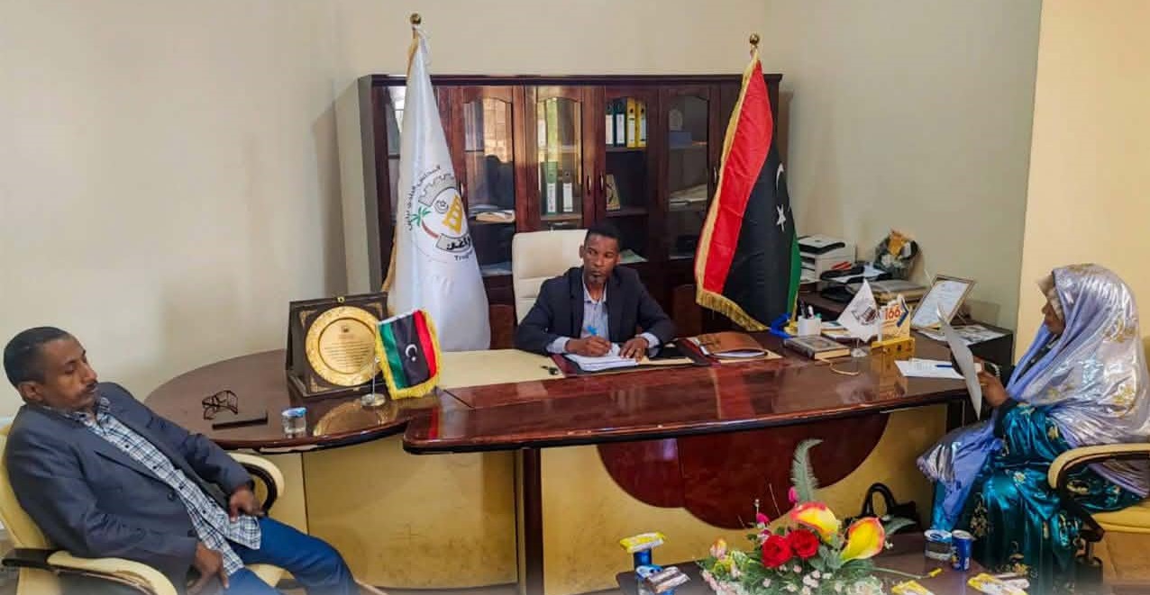 فسانيا | فاطمة يونس استقبل عميد بلدية تراغن المكلف ‘أ. خالد بريكة’، برفقة وكيل الديوان ‘ أ. زكريا إبراهيم ‘، وعضو المجلس ‘أ. محمد الجيزاوي’ رئيسة مكتب مؤسسة الواحة البركت