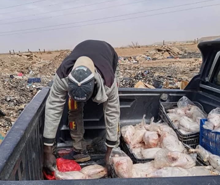 شرع رئيس قسم البوابات الأمنية ببوابة المثلث أشكدة – سبها ، بالتعاون مع جهاز الحرس البلدي براك الشاطئ ومكتب الرقابة علي الأغذية والأدوية فرع الشاطئ، في تنفيذ عملية إعدام صناديق من الدجاج.