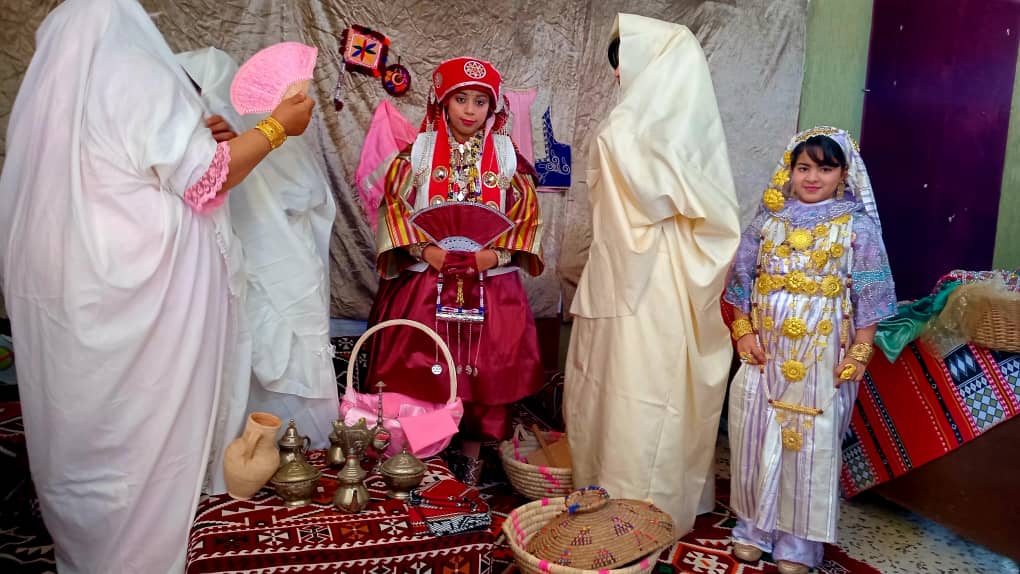 إلى جاتب ذلك شهدت احتفالية الثراث المدرسية عرض لأعمال التلاميذ في تصميم الازياء والخيمة، إضافة للمؤكلات الشعبية، مع أنغام الفنون والأهازيج الشعبية.