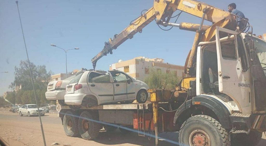 تواصل لجنة إعادة تنظيم الجنوب، برئاسة اللواء ‘جمال العمامي ‘، في رفع هياكل السيارات الخُردة والمركبات المهملة من داخل الأحياء السكنية بمدينة سبها.