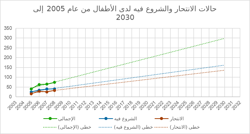 تشير التقديرات المستندة على بيانات التقرير الوطني لعام 2009 كمرجع أساسي لعدد حالات الانتحار لدى الأطفال أو الشروع فيه فإنه وبعد إدخال البيانات في برنامج إكسل وتحليلها، فإن عدد حالات الانتحار الحقيقية في ليبيا قد تكون أعلى بـ 20 ضعفاً من المسجل رسمياً بسبب “الوصمة الاجتماعية”، ومن المتوقع أن تصل حالات الانتحار التام بحلول عام 2030 إلى ما بين 50 و80 حالة سنوياً إذا لم يتم تفعيل إستراتيجية وطنية شاملة وأنه يجب الانتقال من مربع “الإنكار” إلى مربع “الرصد العلمي”، وتفعيل قانون الصحة رقم 106 لسنة 1973 الذي يلزم الدولة بتوفير الرعاية النفسية للنشء.