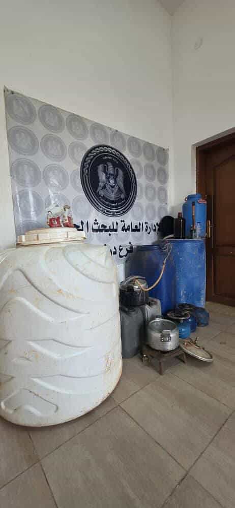 نفّذ جهاز البحث الجنائي – فرع درنة عملية أمنية في منطقة الفتائح، أسفرت عن مداهمة مصنع محلي للخمور وضبط كميات من المواد المسكرة ومخدر الحشيش .