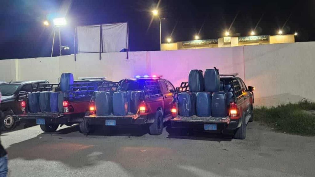 تمكن جهاز البحث الجنائي فرع أجدابيا، من كشف وضبط مستودع يستخدم في تهريب البنزين المدعوم بأحد استراحات ضواحي المدينة.