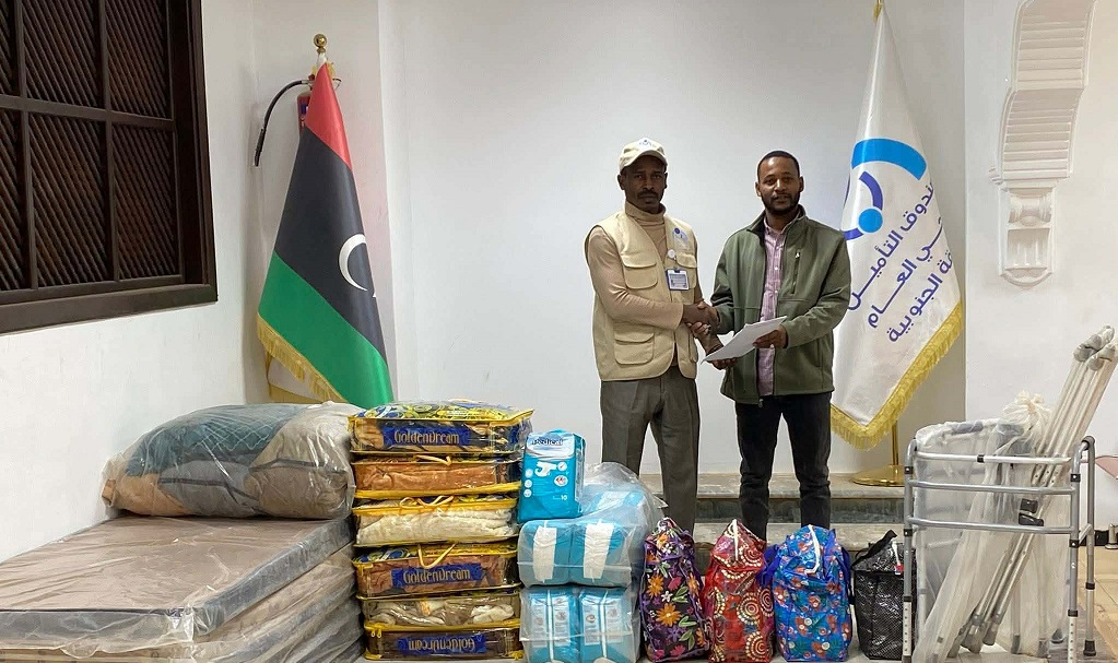 استلم منسق وحدة غدوة التابع لمكتب الصندوق التأمين الصحي سبها ‘ محمد عمران ‘، شحنة من المعدات الطبية من عضو لجنة التسليم ‘ م. خليفة اللاشي ‘.