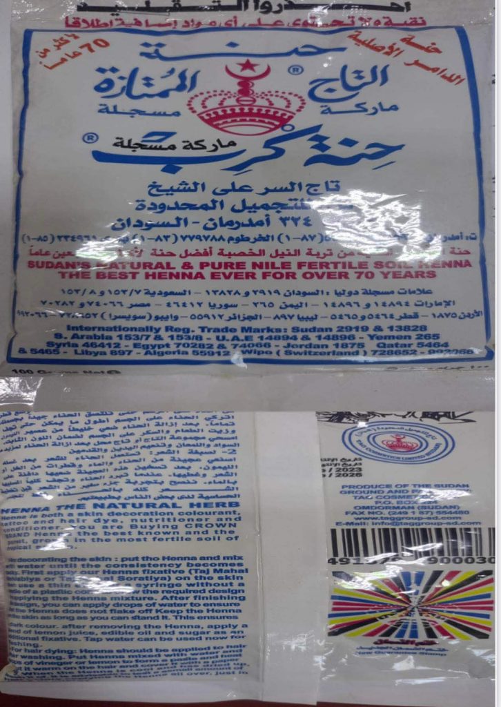 أعلن مركز الرقابة على الأغذية والأدوية، عن رفض شحنة حنة، الدولة المنشأ جمهورية مصر، دخلت البلاد عبر معبر مساعد البري.