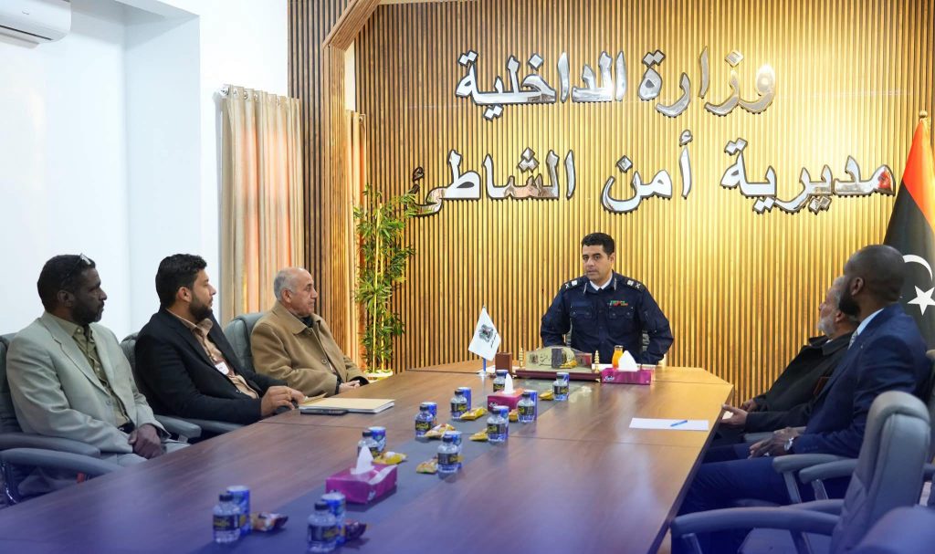 عقد مدير أمن الشاطئ اللواء وهبي الرّخ ، اجتماعًا رسميًا مع عميدي بلديات وادي الشاطئ التي تضم بلديات: ‘براك، برقن، القرضة، وإدري’، لمناقشة عدد من الملفات الخدمية وتفعيل قوانين الإدارة المحلية بما يخدم المواطنين مباشرة.