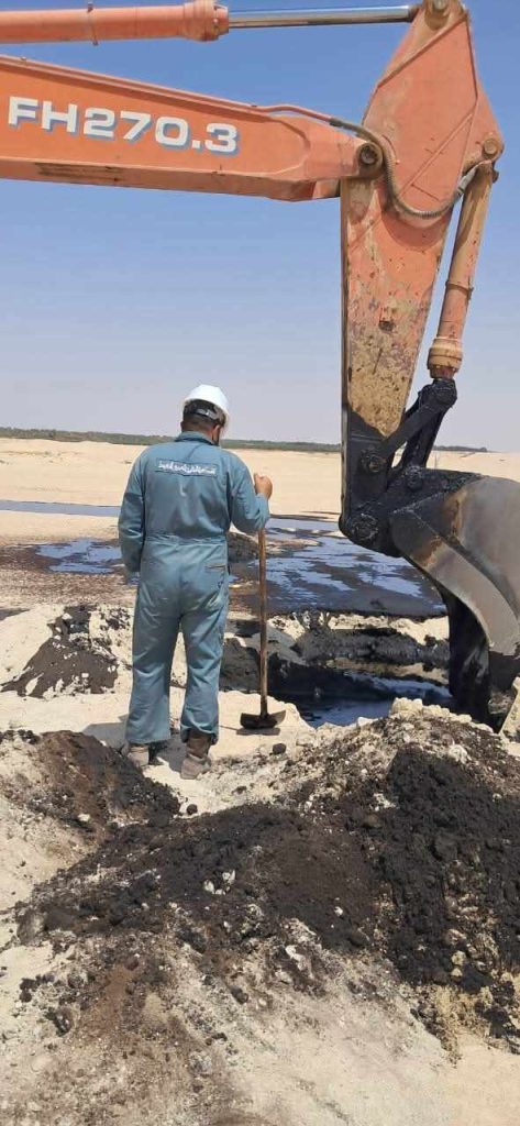 وأوضح جهاز تنفيذ وإدارة مشروع النهر الصناعي ، موقع التسريب على بعد 50 مترا من المحطة 000 + 186 ، فوق أنبوب نقل المياه لخط السرير سرت حيث يقع الأنبوب النفطي المتضرر على عمق 1.5 متر ويبلغ قطره 16 بوصة.