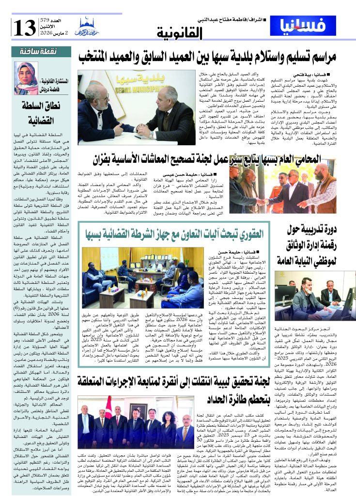 * المستشارة القانونية المتمكنة مشرفة الملف القانوني كتبت في زاويتها الأسبوعية ” نطاق السلطة القضائية “.