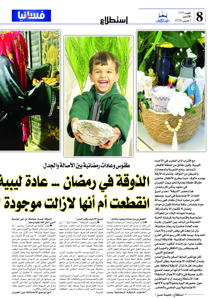 استطلاع صحفي للزميلة المجتهدة الرائعة حليمة حسن بعنوان:( الذوقة في رمضان … عادة ليبية أصيلة هل انقطعت أم أنها لازالت موجودة؟)