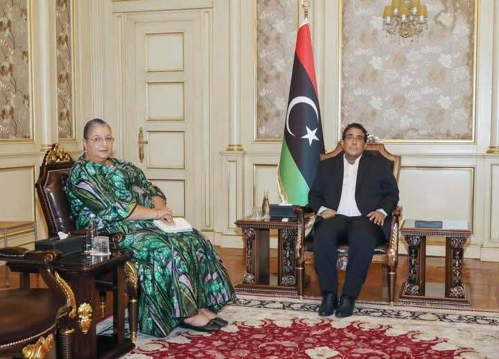 بحث رئيس المجلس الرئاسي ‘ محمد المنفي ‘ ، مع المبعوثة الخاصة للأمين العام للأمم المتحدة إلى ليبيا ‘ هانا تيته ‘ ، آخر التطورات الأمنية والسياسية التي شهدتها العاصمة طرابلس.