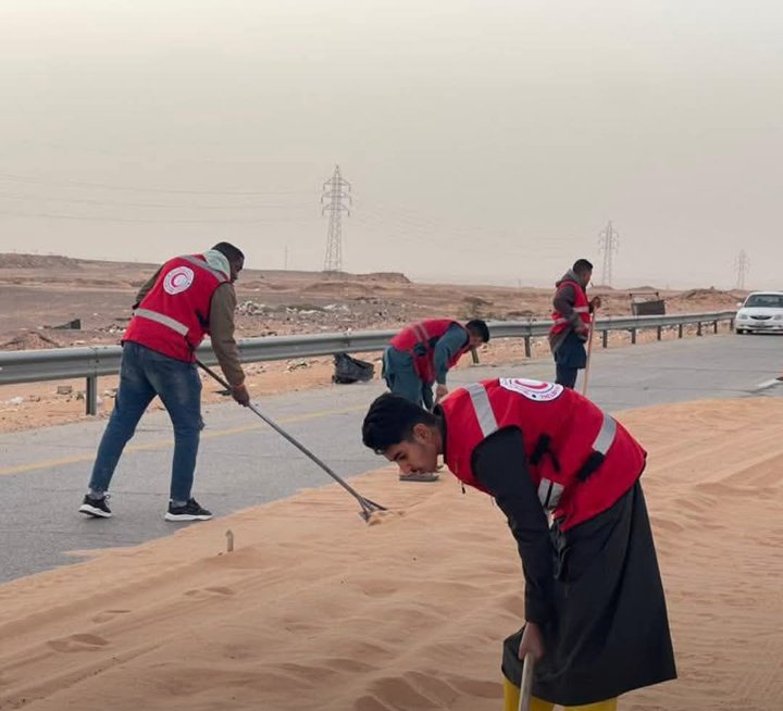 يتضح ان الفرق نجحت في التعامل مع الكثبان الرملية المتراكمة على الطرق العامة، حيث قامت بإزالتها لضمان سلامة المسافرين والحد من وقوع الحوادث المرورية.