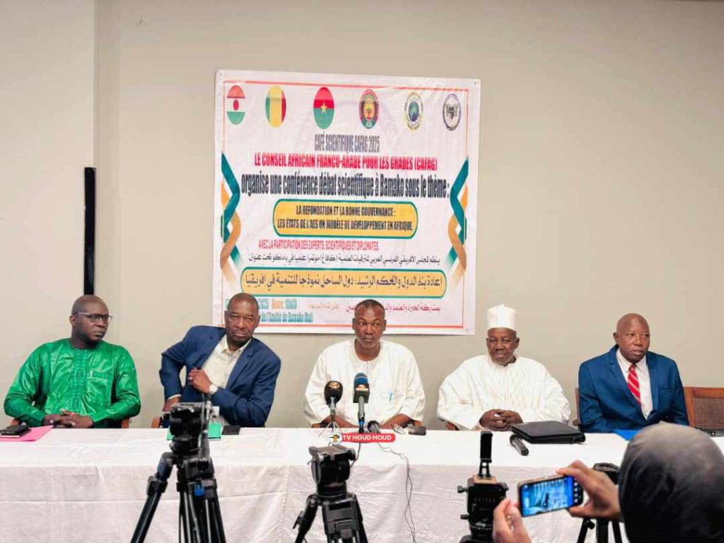 في أجواء علمية ودبلوماسية رفيعة نظم المجلس الأفريقي الفرنسي العربي للترقيات العلمية CAFAG تحت رعاية الرئيس البروفيسور محمد عبد الله جارا وأمين عام مكتب مالي البروفيسور يايا تراوري مؤتمره العالمي تحت عنوان: “إعادة بناء الدول والحكم الرشيد تحالف دول الساحل نموذجًا للتنمية في أفريقيا” وذلك بفندق الصداقة في العاصمة المالية باماكو.
