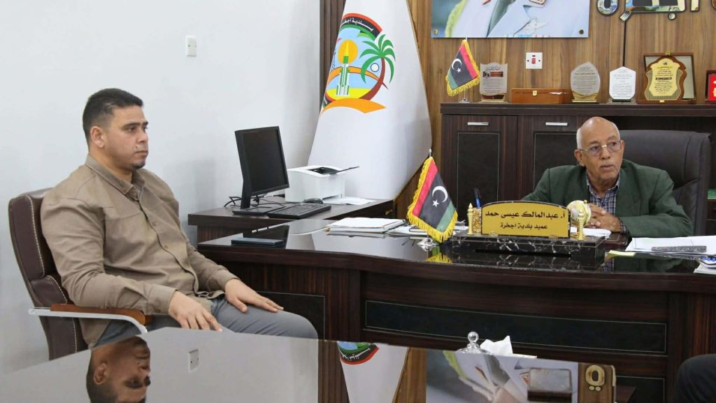 انعقد بمقر بلدية اجخرة، اجتماع ضم عميد البلدية ‘أ. عبد المالك عيسى’، ومدير شركة صلاح الدين للمقاولات العامة المتعاقدة لتنفيذ مشروع البنية التحتية داخل البلدية.
