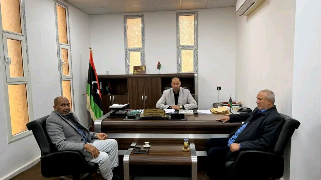 عقد عميد بلدية الكفرة محمد بومريز، اجتماعاً بمكتبه مع مدير مكتب العمل والتأهيل بالبلدية فتحي عبدالهادي، بحضور عضو المجلس البلدي والمكلف بملف القوى العاملة سليمان بوشنة، لمتابعة سير العمل في القطاع ومعالجة القضايا العالقة.