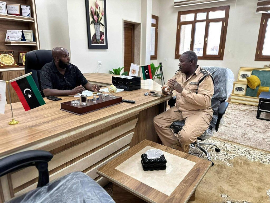 استقبل عميد بلدية مرزق ‘أشرف آدم ‘، بديوان المجلس البلدي، رئيس جهاز الشرطة الزراعية فرع مرزق العميد ‘أيوب صالح ‘، لمناقشة آليات تعزيز التعاون والتنسيق المشترك بين البلدية والجهاز.