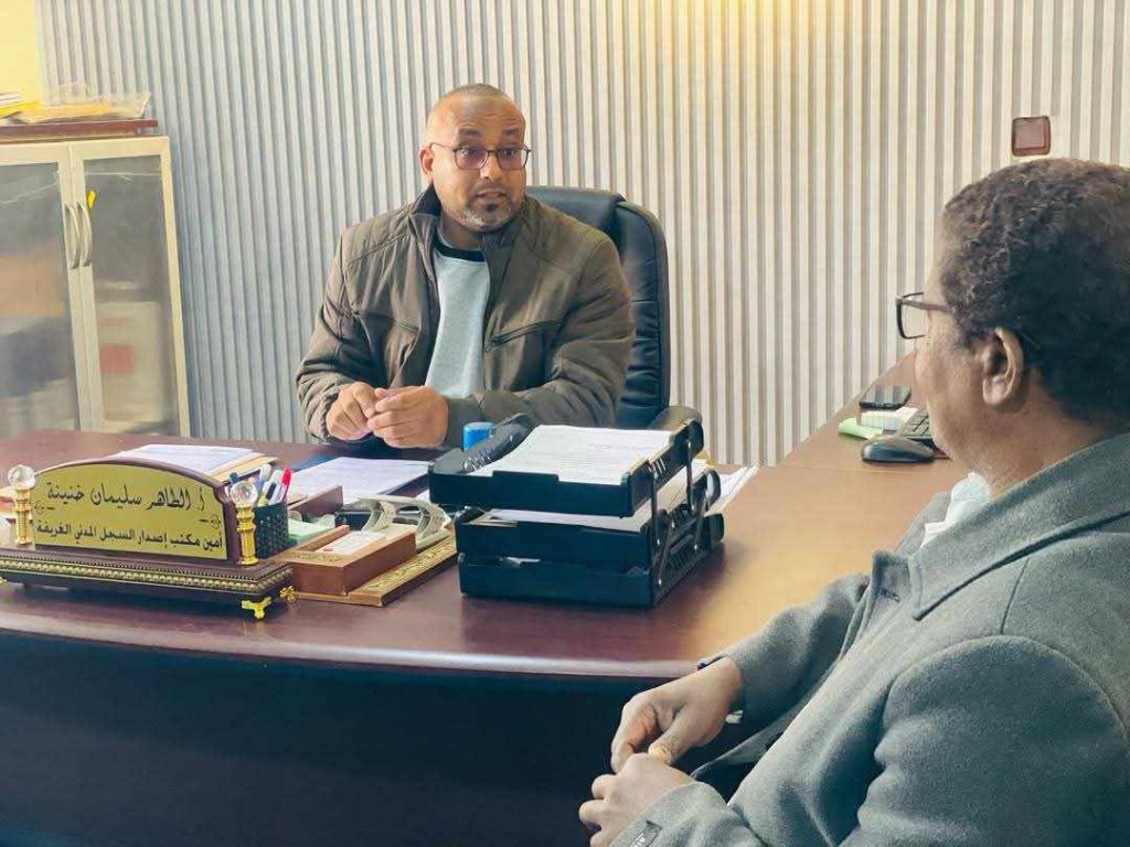 نفذ عميد بلدية الغريفة التواتي بكه زيارة تفقدية لمكتب إصدار السجل المدني بالغريفة برفقة عضو المجلس البلدي علي الحيطوم وكان في استقبالهم مدير المكتب الطاهر سليمان ومدير مكتب الشؤون الإدارية خالد سعد ورئيس قسم التعديلات أبوصلاح مسعود ورئيس السجل المدني الغريفة الزاهي ميلود وبحضور عدد من مديري المكاتب بديوان البلدية.