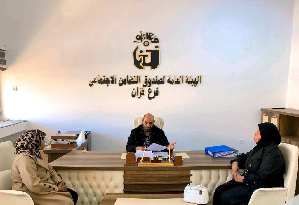 زارت عضو المجلس البلدي مرزق ‘ حواء بركة ‘، برفقة الناشطة في العمل الإنساني ‘ سهيلة الفلاح ‘، فرع الهيئة العامة لصندوق الضمان الاجتماعي بالمنطقة الجنوبية، وذلك في إطار المتابعة الميدانية وتعزيز التكامل بين المؤسسات الخدمية.