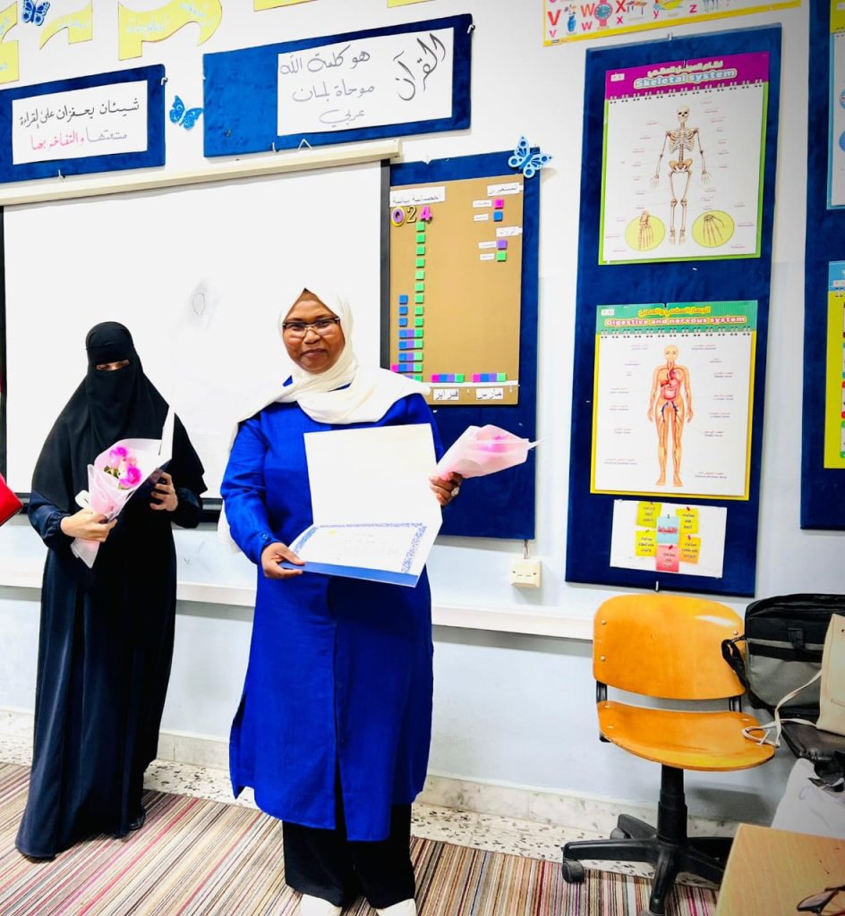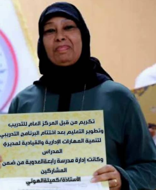 وتم خلال الاختتام تم تكريم المدربات المتميزات، وإدارة مدرسة رابعة العدوية، وتكريم خاص للأستاذة “كميلة الهوني” مدير مدرسة رابعة العدوية على جهودها المميزة التي ساهمت في إنجاح الدوة، اضافة لتكريم مراقب التربية والتعليم ببلدية طرابلس المركز وتكريم عدد من مدارء المكاتب والأقسام بالمراقبة .