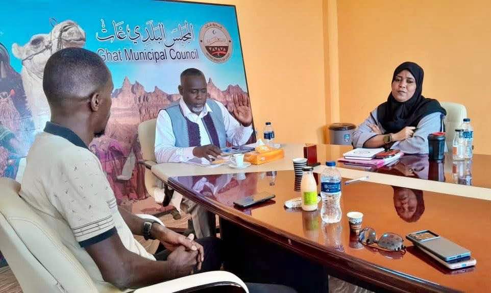 عقد رئيس المجلس التسييري لبلدية غات المكلف، ‘ رمضان أمبارك ‘ ، اجتماعًا تنسيقيًا مع كل من مكتب أملاك الدولة غات، والمجلس المحلي للشباب، لمناقشة إمكانية تخصيص قطعة أرض لصالح مجلس الشباب بالبلدية.