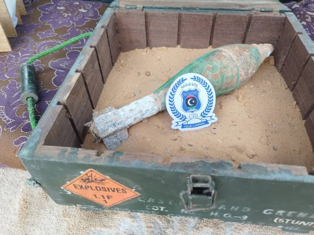 تمكّن فريق التفتيش الأمني وتفكيك المتفجرات بإدارة الشؤون الفنية من التعامل مع قذيفة هاون عيار (81) غير منفجرة عُثر عليها داخل أحد المقرات بمنطقة المشروع، وذلك عقب بلاغ ورد من جهاز دعم المديريات.