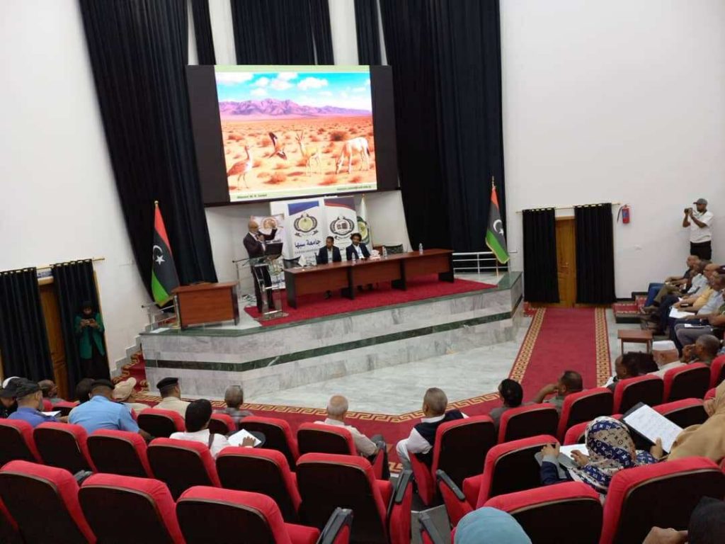 احتضن مركز اللغات بجامعة سبها، محاضرة علمية بعنوان: ” الرؤى الوطنية للمحميات” ، نظمتها محمية الهاروج الأسود بالتعاون مع جامعة سبها، ضمن برامجها الهادفة إلى تعزيز الوعي البيئي والتعريف بأهمية المحميات الطبيعية في ليبيا.