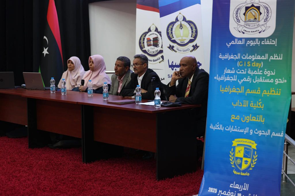 احتفى قسم الجغرافيا بكلية الآداب في جامعة سبها، وبإشراف مركز البحوث والاستشارات العلمية، باليوم العالمي لنظم المعلومات الجغرافية، عبر ندوة علمية موسعة شارك بها عدد من أعضاء هيئة التدريس والباحثين والطلاب والمهتمين بالتقنيات الجغرافية الحديثة وبحضور عميد كلية الآداب.