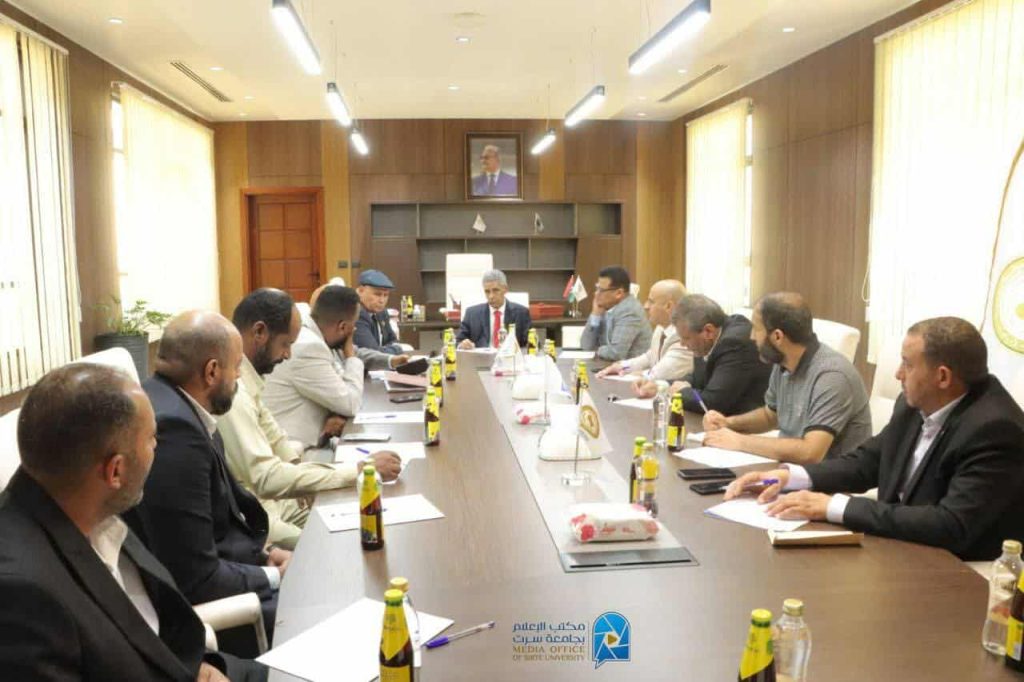 ترأس رئيس جامعة سرت ‘ سليمان الشاطر’، ورئيس جامعة الجفرة ‘ يوسف جلالة’، اجتماعا مشتركا بين الجامعتين لتعزيز التعاون والتكامل في مجالات التعليم العالي، بحضور أعضاء الوفدين ومديري الإدارات.