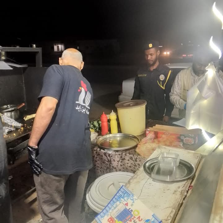 نظم مكتب الرقابة على الأغذية والأدوية وادي الحياة ، بالتعاون مع شعبة الاغذية بجهاز الحرس البلدي فرع الغريفة، جولة ليلية لمتابعة وحصر بائعي الشاي واصحاب شوايات الدجاج على الطريق العام في نطاق المركز.