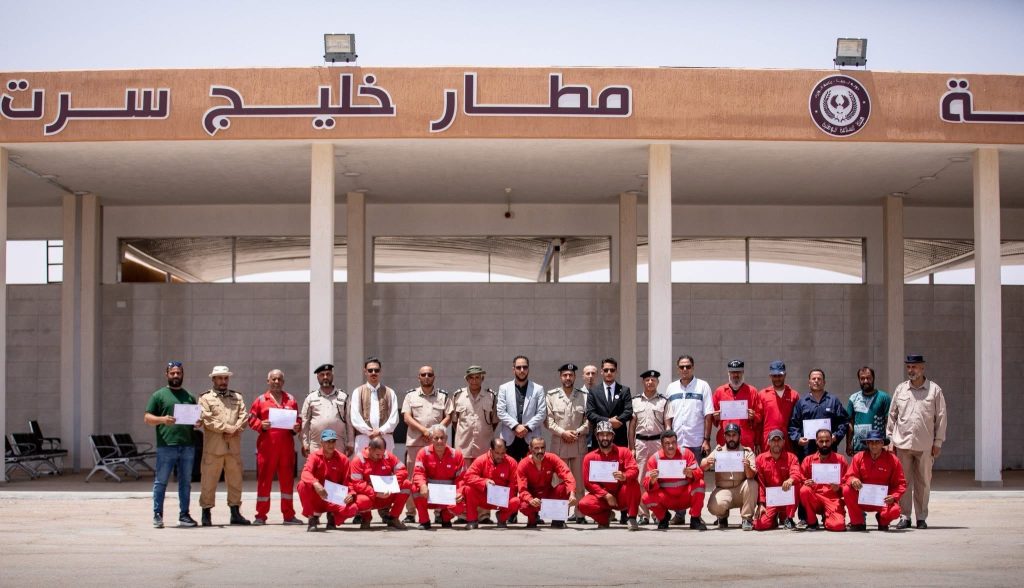 شهد مطار خليج سرت الدولي، اختتام فعاليات الدورة التدريبية لعناصر هيئة السلامة الوطنية، والتي أُقيمت تحت إشراف ورعاية الجهاز الوطني للتنمية