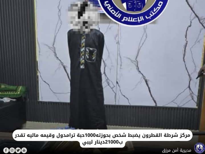 وردت معلومات إلى وحدة التحري بمركز القطرون بمديرية أمن مرزق ، عن وجود مركبة آلية مشبوهة نوع هونداي سوناتا في الطريق الرابط بين منطقة القطرون والبخي.