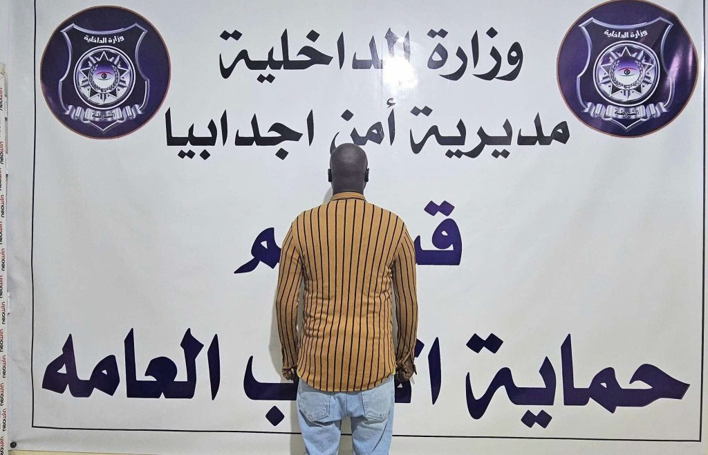 تمكّن قسم حماية الآداب العامة بمدرية أمن اجدابيا ، من ضبط شخص سوداني الجنسية مواليد 1992م متهم بسرقة مبلغ مالي يتجاوز 70,000 دينار ليبي من محل حلويات ونواشف بالمدينة بعد شكوى مقدمة من مالك المحل الليبي حول نقص مستمر وملحوظ في إيرادات المحل مع وجود اشتباه بأحد العمال.