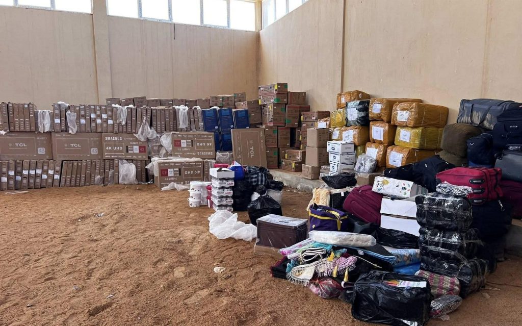وأوضح الجهاز، في بيان له، أن المضبوطات شملت ملابس وأحذية وشاشات تلفزيونية ودراجات هوائية، إضافة إلى مواد غذائية وسجائر ومكسرات بمختلف أنواعها.
