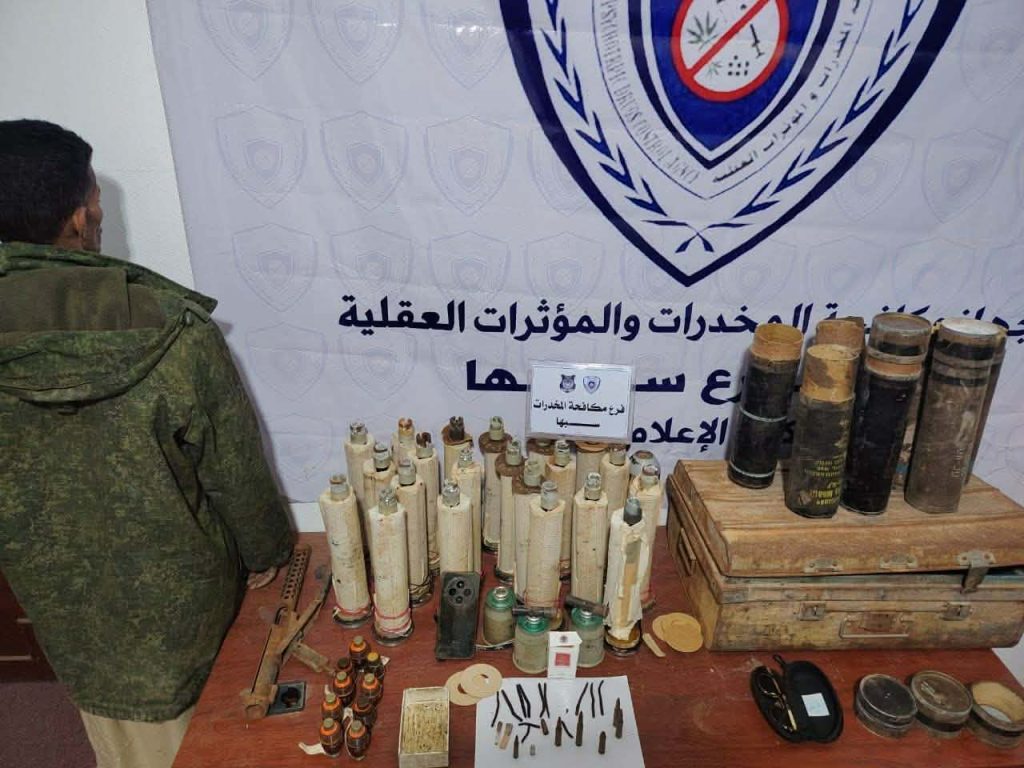 تمكن جهاز مكافحة المخدرات فرع سبها من ضبط كمية من المخدرات والأسلحة خلال عملية ميدانية بعد ورود معلومات دقيقة عن نشاط أحد الأشخاص في تجارة المخدرات بمنطقة 85 بالمنشية.