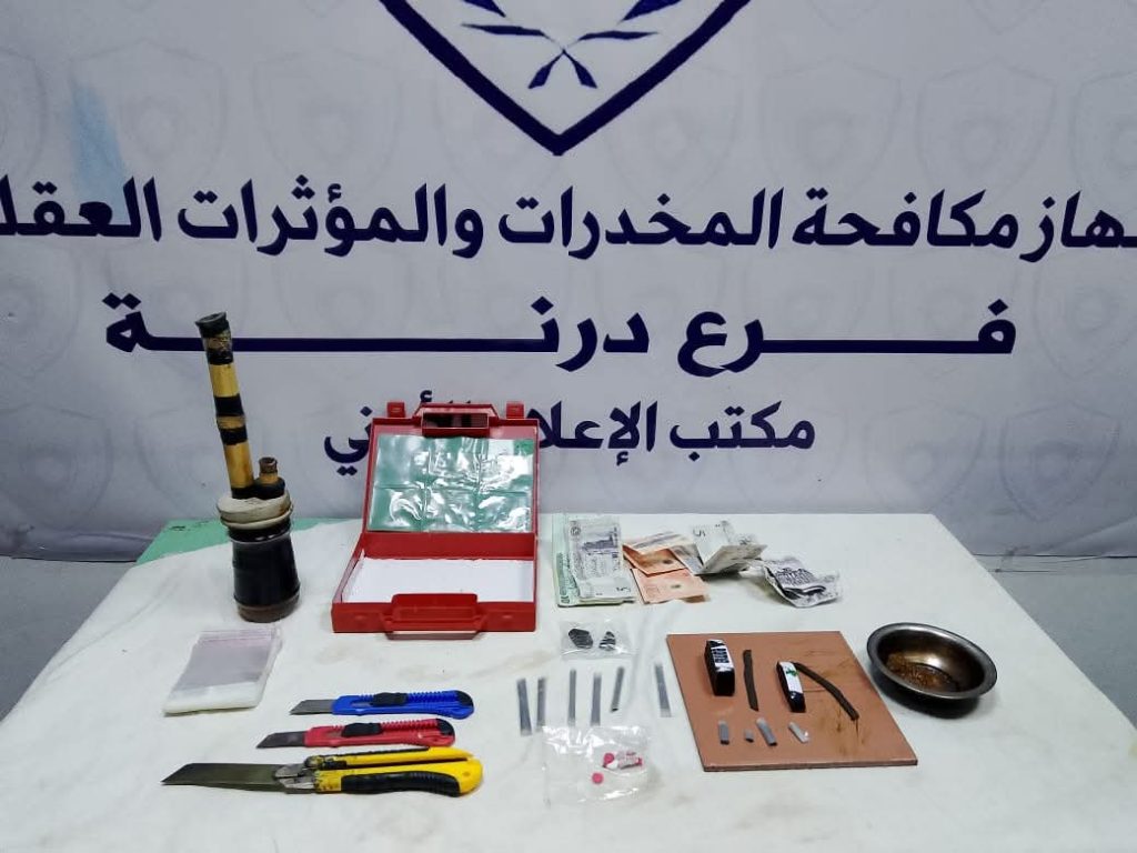 تمكن أعضاء فرع جهاز مكافحة المخدرات والمؤثرات العقلية فرع درنة من ضبط شخصين بعد رصد وتحريات دقيقة في منطقة أم الرزم بحي جبيلة القطعان.