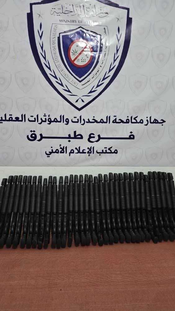 تمكن جهاز مكافحة المخدرات والمؤثرات العقلية فرع طبرق من ضبط كمية من الأسلحة بعد مداهمة شاليه يقع في منطقة أمساعد قرب الحدود الليبية المصرية، يُشتبه باستخدامه في أنشطة تهريب.
