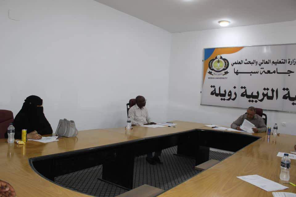 عقد مجلس كلية التربية زويلة بجامعة سبها ، اجتماعه الاعتيادي الخامس للعام الجاري ‘ 2025 ‘ ، للوقوف على الاستعدادات الجارية لإجراء الامتحانات النهائية.