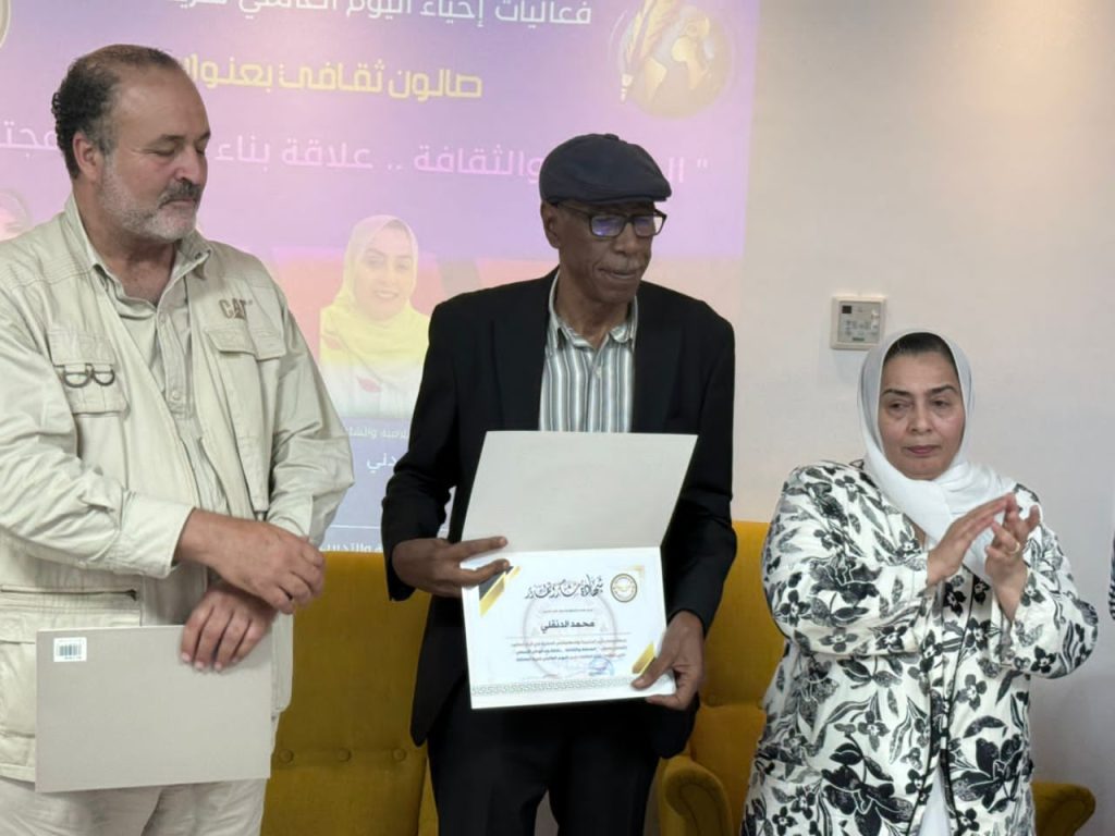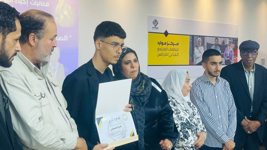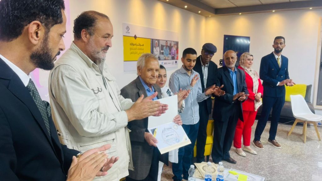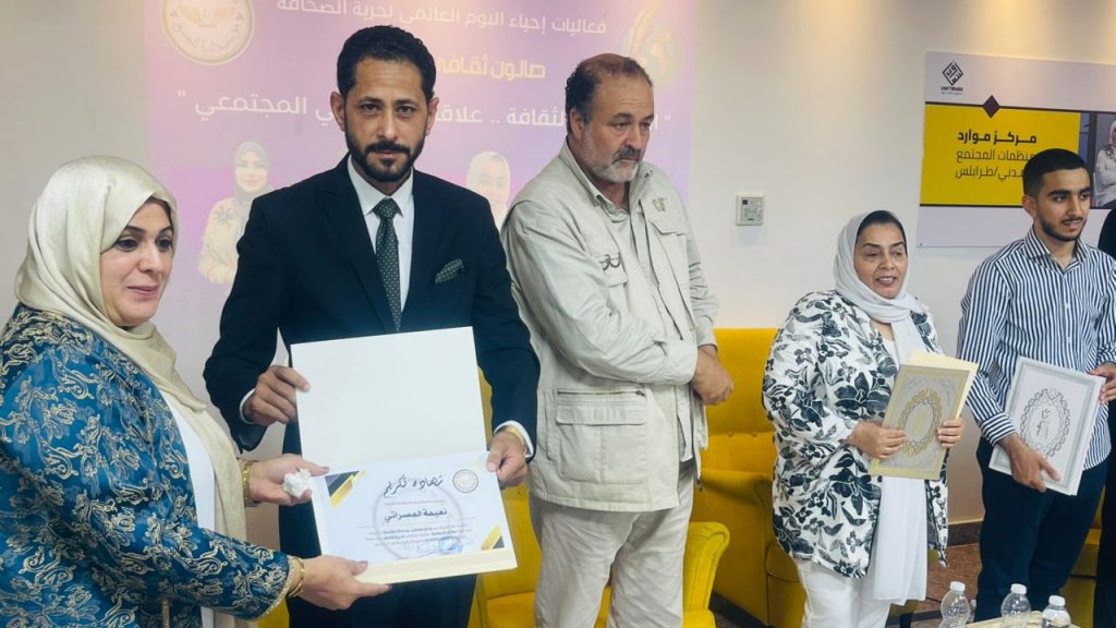 التكريم جاء على هامش الحوارية التي نظمتها مؤسسة ليبيا للجميع للتنمية والثقافة والتدريب تحت عنوان:”الإعلام الليبي بين حرية التعبير وأخلاقيات المهنة” .