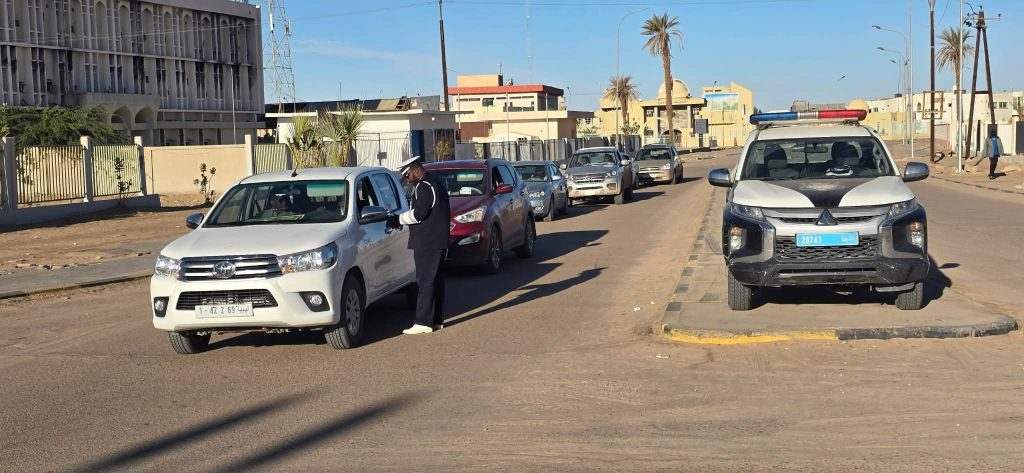 أجرى مساعد مدير الأمن للشؤون الأمنية بمديرية أمن مرزق اللواء ‘ آدم الدرسي ‘، جولة تفقدية على دوريات قسم المرور والتراخيص داخل مدينة مرزق، وذلك للوقوف على سير العمل الميداني .