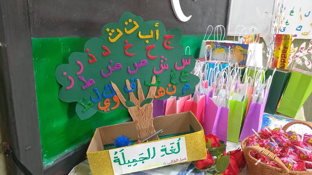 وعلى هامش الاحتفالية افتتحت مدير الفترة المسائية بمدرسة رابعة العدوية الأستاذة “ثريا المقرش” المعرض الفني الذي أقيم بالمناسبة، والذي أبرز نتاج التلاميذ والتلميذات بالفترة المسائية من أعمال جسدت اللغة العربية وأهميتها بلوحات ورسومات ومجسمات ووسائل تعليمية تفاعلية لتعزيز الهوية اللغوية لدى الأطفال بعيداً عن الطرق التقليدية، هذاوتخلل الحفل والمعرض مسابقة في الحروف الهجائية .