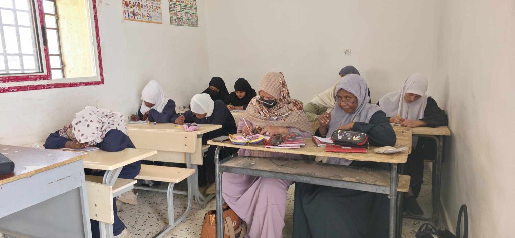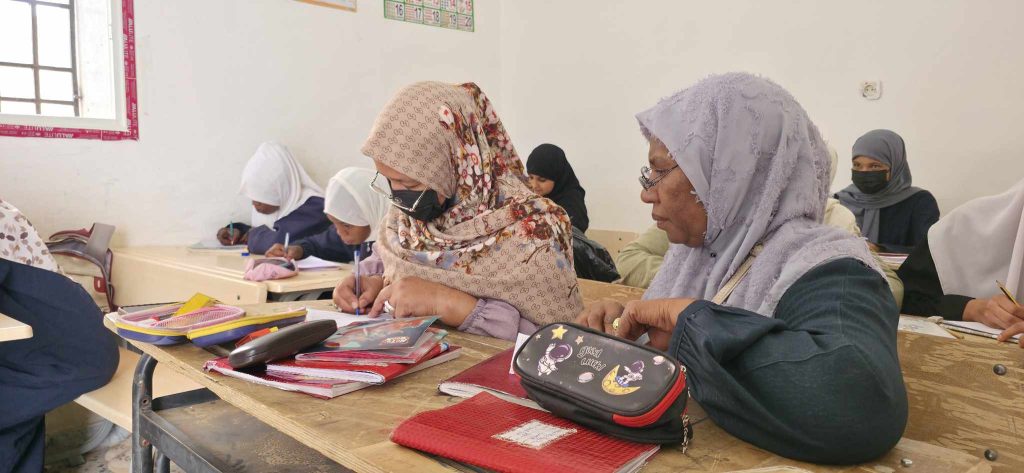 أما خديجة خيرالله، 65 عامًا، فقصتها لا تقل إلهامًا. “أنا أكبر البنات في العائلة، ووالدي – رحمه الله – كان يرفض تعليمي. بقيت محرومة من الدراسة حتى كبرت، لكنني دخلت مدرسة فزان من أجل تعلّم القراءة والكتابة، ومن أجل حفظ القرآن الكريم. واليوم أحلم بالحصول على الشهادة الإعدادية”، تقول وهي تبتسم. وتضيف: “أولادي يشجعونني ويساعدونني، وأطلب من كل ولي أمر أن يدعم بناته. اليوم ليس وقت جهل، بل وقت علم“.