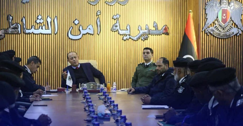 استضاف مدير أمن الشاطئ ورئيس الغرفة الأمنية المشتركة اللواء ‘ وهبي الرخ ‘، مدير نيابة براك الشاطئ ‘ أ. طارق اصكاح ‘، بحضور مساعدي الأمنية والعامة وذلك في إطار تعزيز التنسيق المشترك بين مديرية الأمن والنيابة العامة.