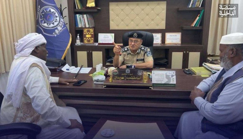 استقبل مدير أمن مرزق، اللواء الدكتور أسامة عويدان، بمكتبه وبحضور مدير المكتب العقيد منصف الفيتوري، كلاً من المنسق الاجتماعي لأهالي مرزق عبدالواحد عبدالقادر عبدالواحد، وإمحمد محمد صالح الجدي، ومحمد عبدالله السنوسي، لبحث سبل التنسيق بشأن إقامة بيان تضامني ووقفة سلمية دعماً للقيادة العامة للقوات المسلحة العربية الليبية وتقديراً لدور صندوق إعمار ليبيا في إعادة إعمار مدينة مرزق.
