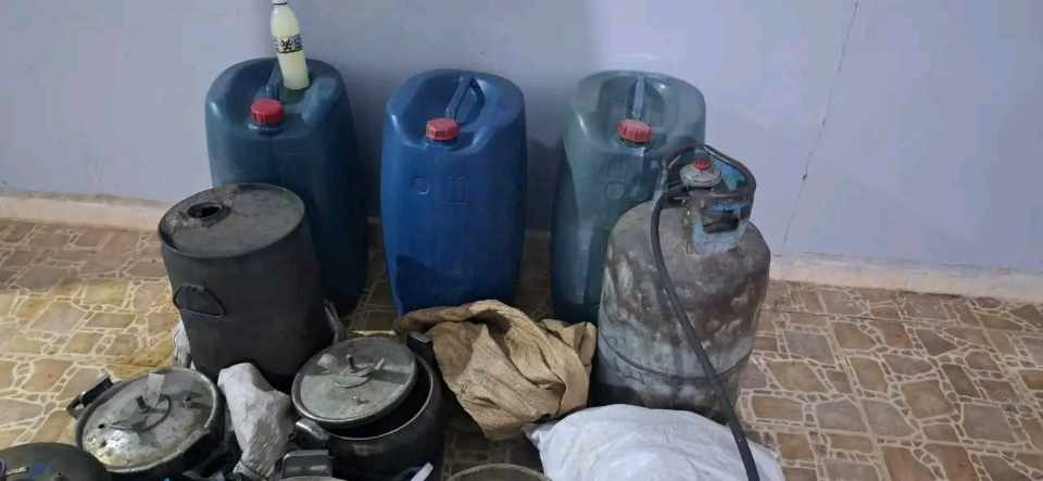 تمكن أعضاء مركز شرطة ربيانة من مداهمة منزل وضبط شخص من الجنسية المالية يمتهن تصنيع وبيع المواد المسكرة، وذلك تنفيذاً للخطة الأمنية الموضوعة من قبل مدير أمن الكفرة ورئيس الغرفة الأمنية المشتركة بالجنوب الشرقي، اللواء إيهاب بوخريص الكزة، حيث أسفرت العملية عن ضبط مصنع متكامل لتصنيع الخمور وكمية تقدر بـ 180 لتراً من المواد المسكرة،