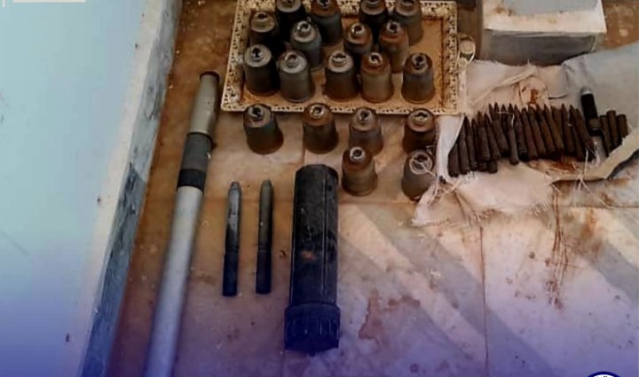 حيث أسفرت عملية التفتيش عن ضبط المضبوطات التالية: عدد (19) صمام SBG وعدد (26) ذخيرة عيار 14.5 وعدد (01) صاروخ C5 وعدد (02) ذخيرة هاون وعلبة يشتبه بها مادة متفجرة.
