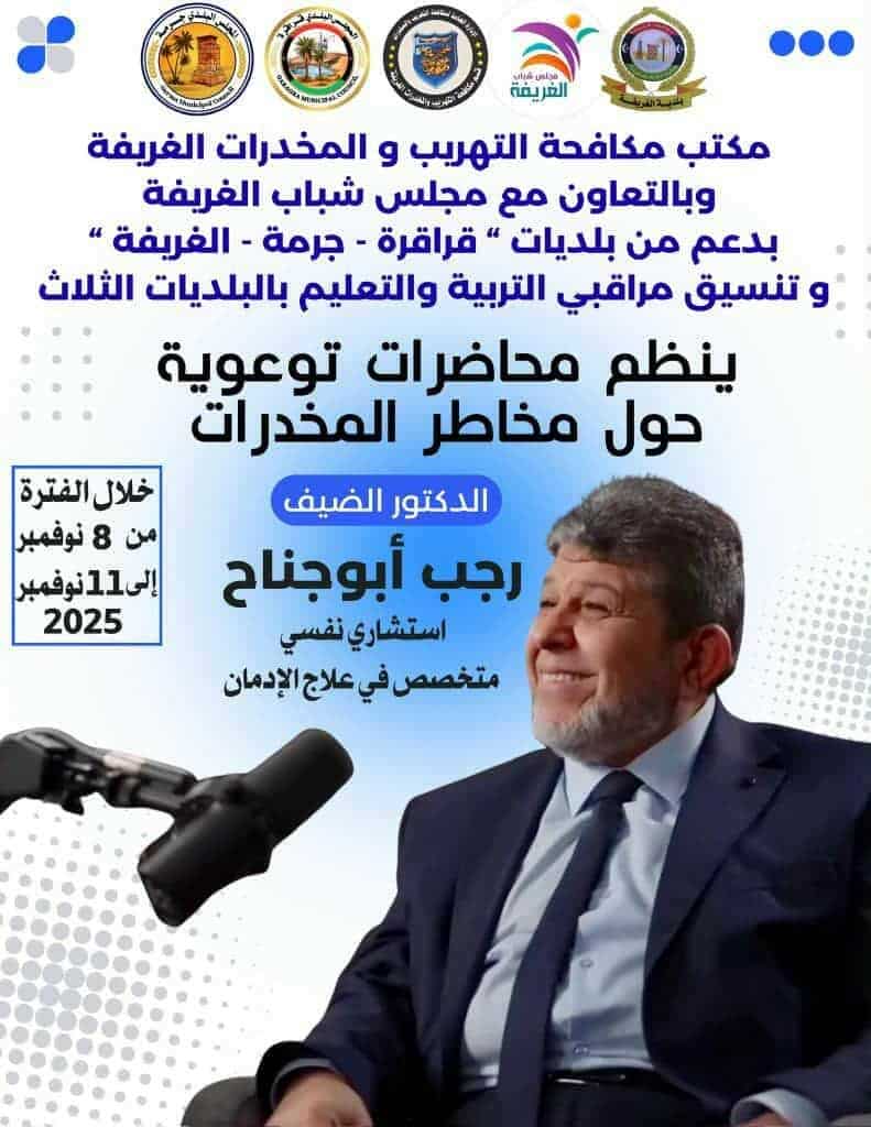 يتضح ان، الحملة تشمل بلديات وادي الحياة، وذلك بهدف رفع مستوى الوعي المجتمعي بخطورة هذه الآفة وأثرها على الفرد والمجتمع، ودعم الجهود الوطنية الرامية لحماية شبابنا وبناء مستقبل آمن ومستقر.