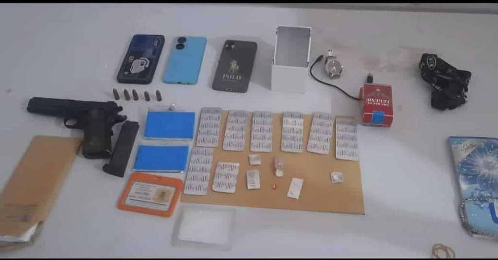 وأكد الجهاز أن تم ضبط المتهمين وبحوزتهما 75 قرصاً من نوع ‘ابتريل’، إلى جانب مسدس عيار 9 ملم يحتوي على 5 طلقات، مشيرا إلى ان اتخذت الإجراءات الأولية اللازمة بحقهما.