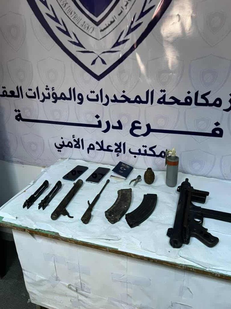 ضبط أعضاء جهاز مكافحة المخدرات والمؤثرات العقلية فرع درنة، المدعو ‘ع.ح.أ.ش’ من مواليد 1967 والمقيم بالمنطقة ذاتها، وذلك خلال مداهمة مزرعة في منطقة شفشفة الجبلية الواقعة بين رأس الهلال شمالاً ولملودة جنوباً.